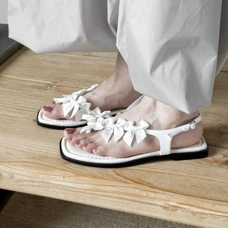 Модные балетки с бантом, женские сандалии с перемычкой для пальца, дизайнерская обувь, женские модные шлепанцы, летние новинки, элегантные повседневные шлепанцы, zapatos mujer — купить товар онлайн с бесплатной доставкой по всему миру!