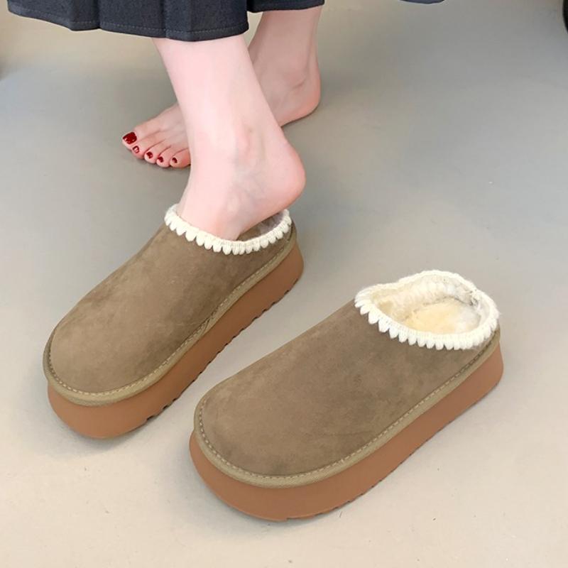 Модные туфли-мюли Женские балетки Платформенные тапочки Меховая обувь Замшевые Новые 2025 Зимние Короткий плюш Слингбэк Кроссовки Уютные шлепанцы Zapatos