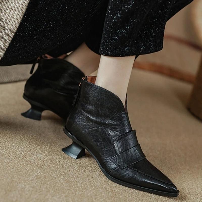 Мода Большой размер 42 Осень Женские ботинки Острый носок Каблук-рюмочка Ботильоны Кожаная обувь Женские Элегантные Низкий каблук До щиколотки Зимние Zapatos De Mujer