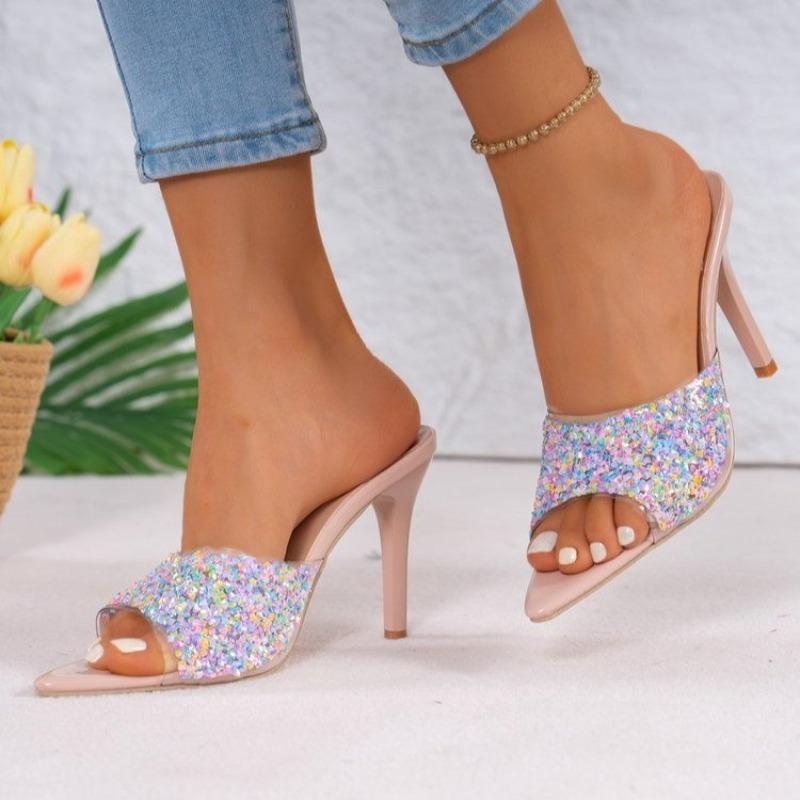 Модные темпераментные шлепанцы женские летние новые с острым носком открытым носком стразами для улицы на шпильке против скольжения износостойкие — купить товар онлайн с бесплатной доставкой по всему миру!