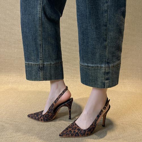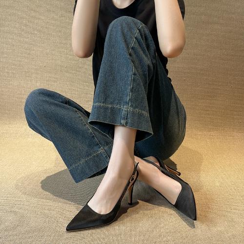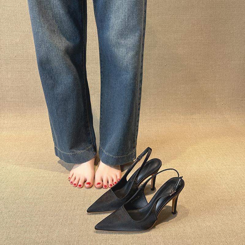 Модные французские классические серые женские сандалии на высоком каблуке с острым носком, открытой пяткой и тонким ремешком, для вечеринок, для работы, универсальная обувь