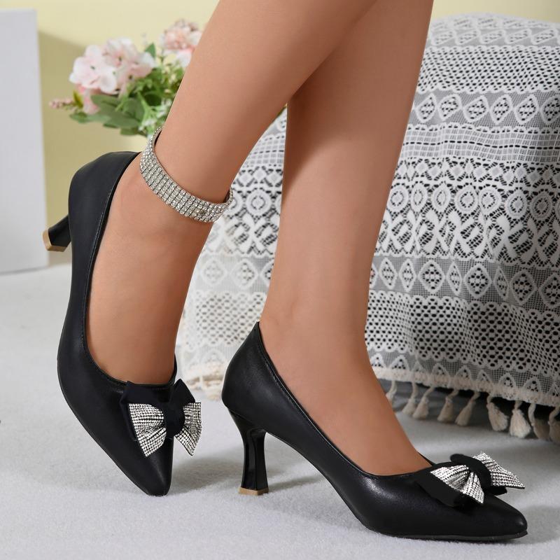 Модные весенние новые туфли на тонком каблуке, модные, с острым носком, с мелким вырезом, кожаные, со стразами, бабочкой, застежка-слипон, туфли-киттен хилл