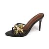 Мода Новые Высокие Каблуки Лето Женская Мода Круглый Носок Открытый Носок Красивый Металлический Цветок Прямой Ремешок Нескользящие Шлепанцы