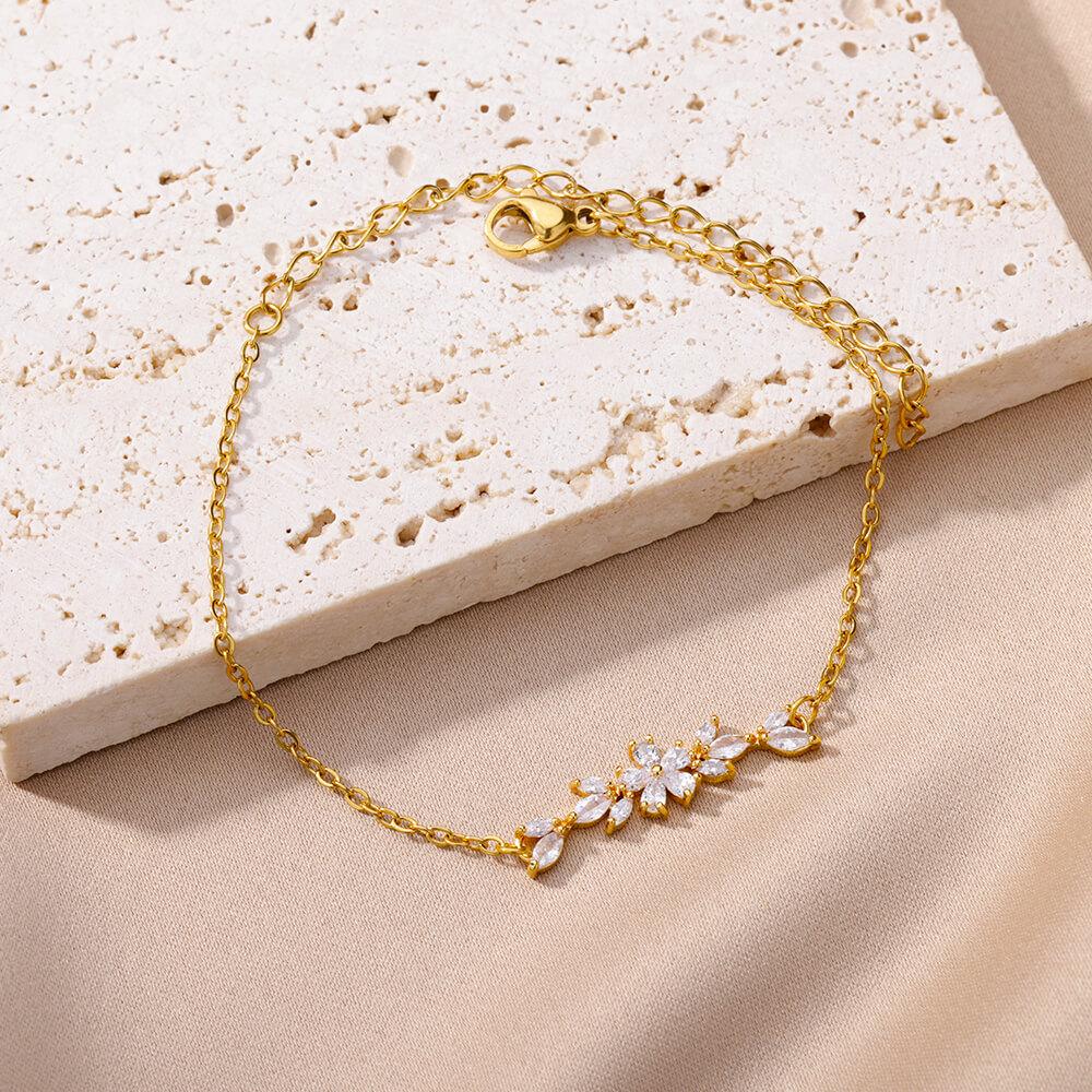 Elegant Zircon Flowers Bracelet For Women Girls Charm Gold Color Stainless Steel Plant Bracelets Luxury Designer Jewelry Gifts CLE