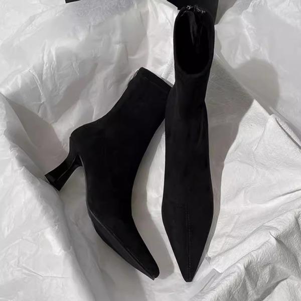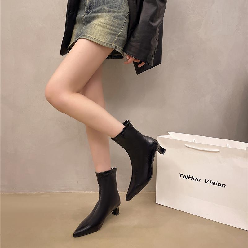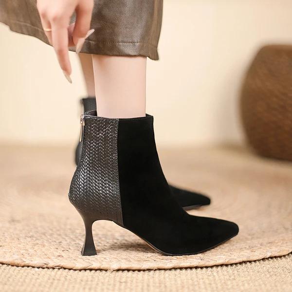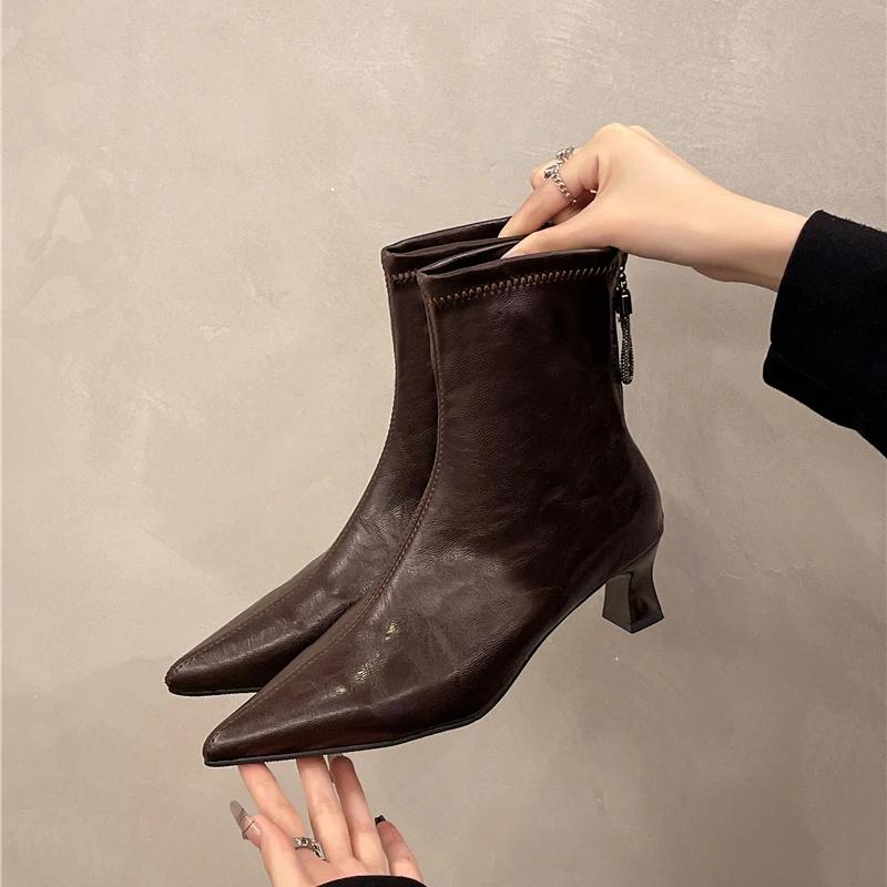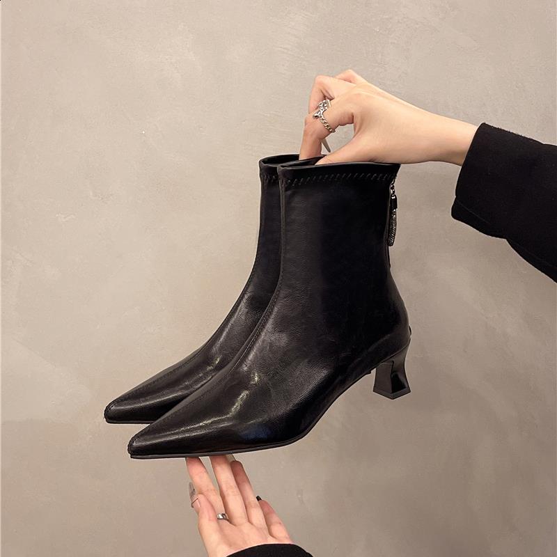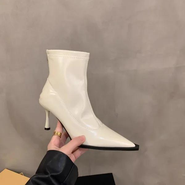 Fashion Back Zip White Ankle Boots Winter Shoes For Women Boots-Women Zipper Low Sexy 2025 Ladies High Heel Pointy Rock Autumn Pointed T