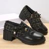 Модные женские элегантные туфли-лодочки в стиле колор-блок Comemore 2025 Весна Новинка Толстый каблук Женские одинарные туфли Круглый носок Декор в виде бантика Каблуки для женщин