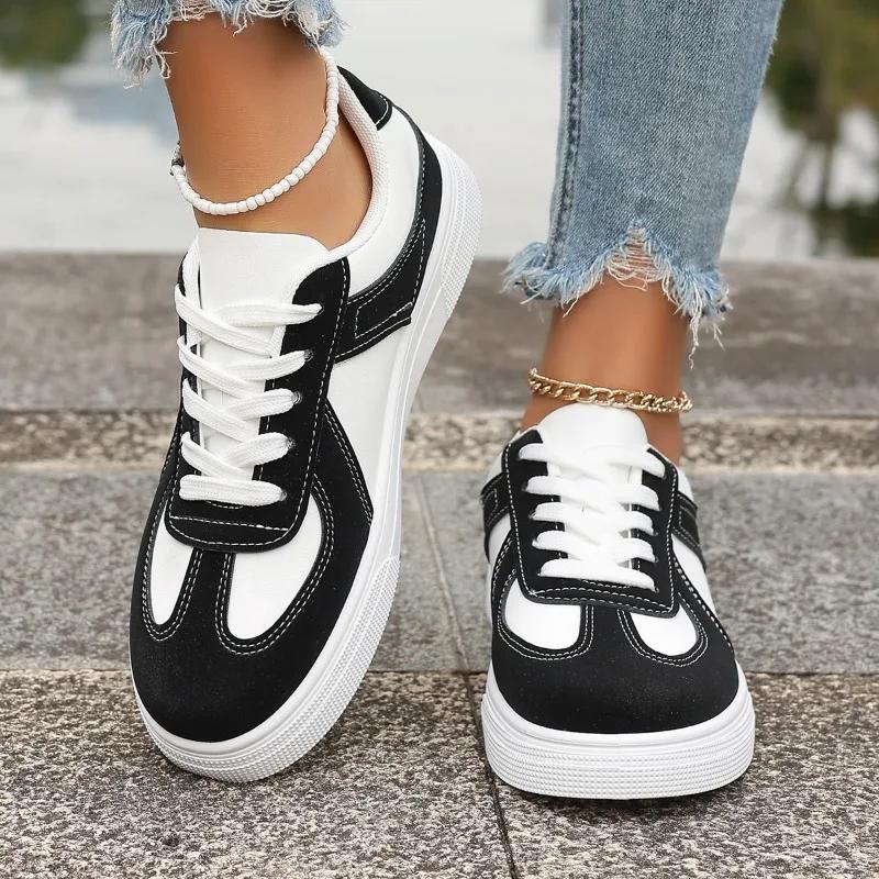 Мода 2025 Большой размер Плоские с Женские Вулканизированные Туфли Уличная Ходьба На шнуровке Смешанные цвета Кроссовки Универсальные Женские Повседневные Туфли
