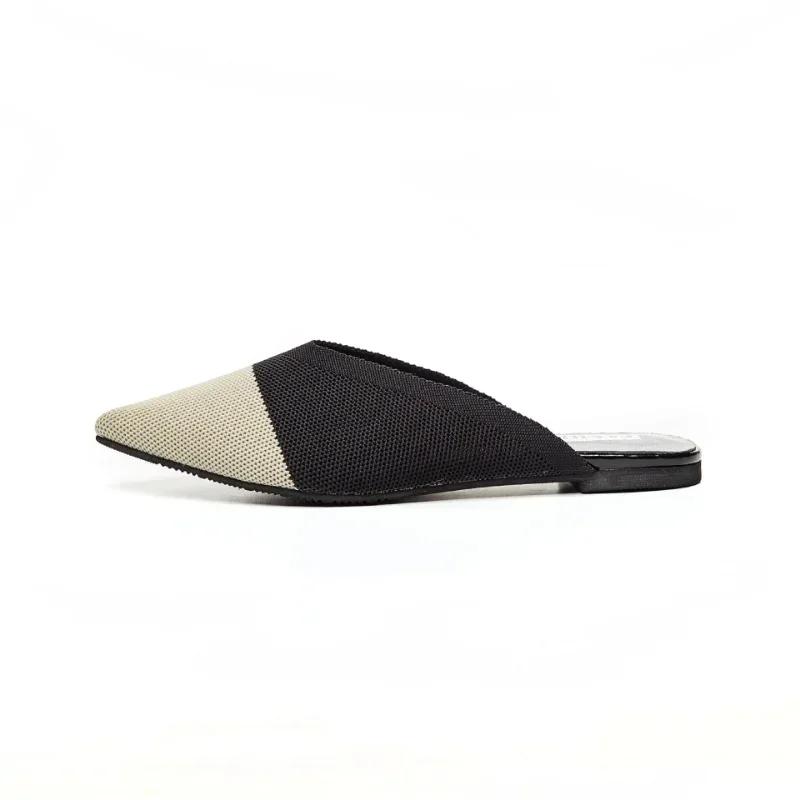Модные женские мюли, летние вязаные, остроносые, женские полуслайды, мюли, мокасины, повседневные тапочки, женские туфли, сандалии на плоской подошве, размер 35-43