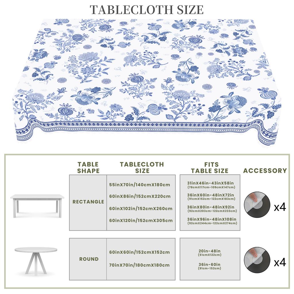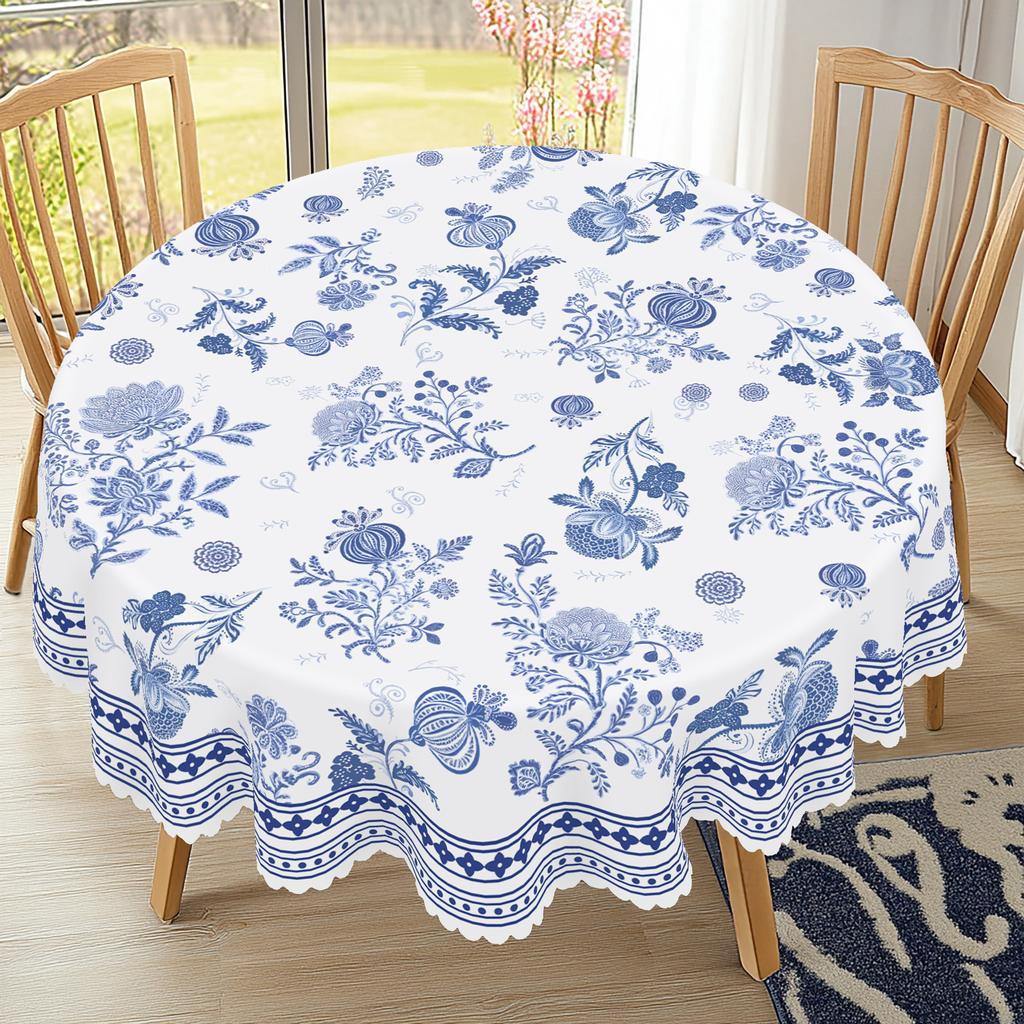 1 штука ретро цветочных весенне-летних круглых и прямоугольных скатертей, доступны в различных размерах, с рисунком в виде сине-белого фарфорового цветочного принта