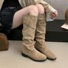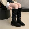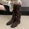 Модные замшевые ботфорты Comemore для женщин 2025 Новая осень Ретро Плиссированные Модные туфли на массивном каблуке для женщин Однотонные высокие ботфорты Femininas