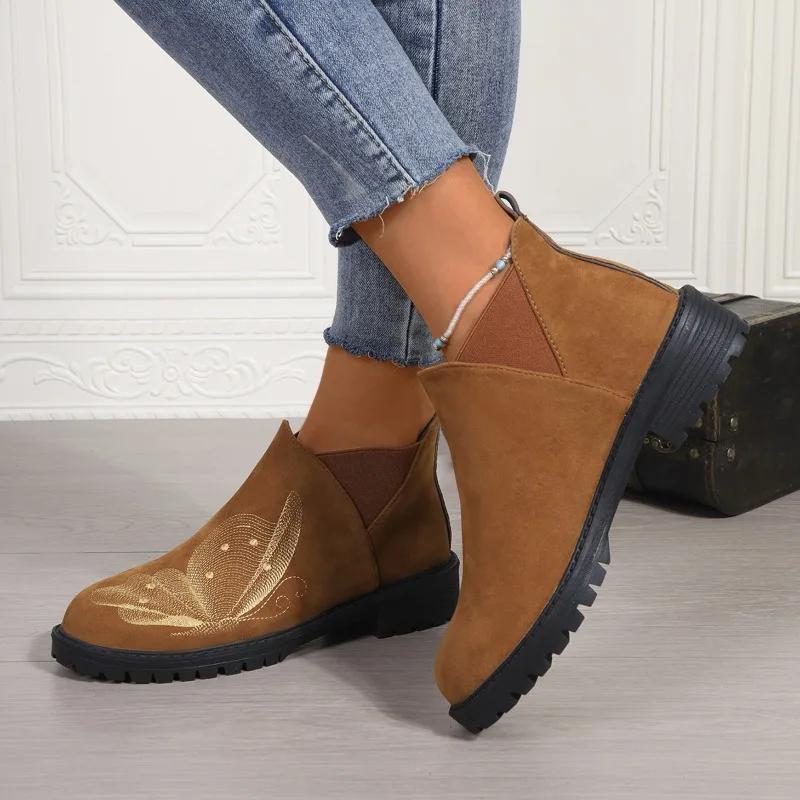 Fashion European American Women's Boots 2024 Autumn New Item Large Embroidered Butterfly Short Tube Elastic Women's Bare Boots Sneakers — купить товар онлайн с бесплатной доставкой по всему миру!