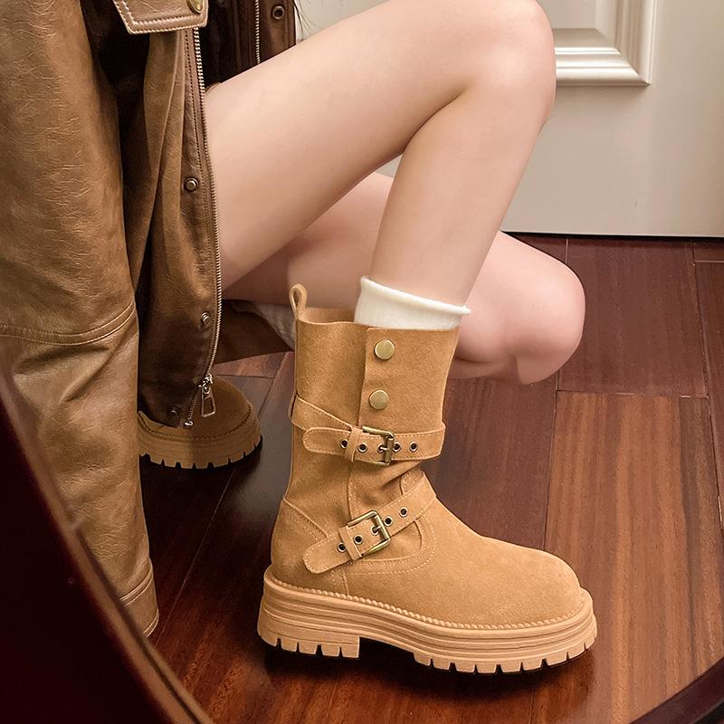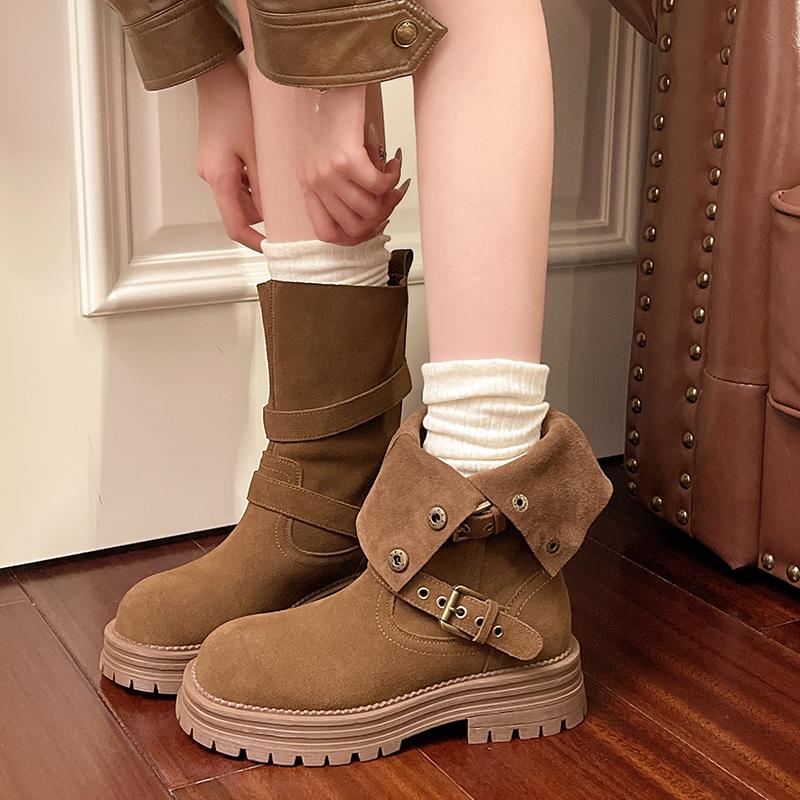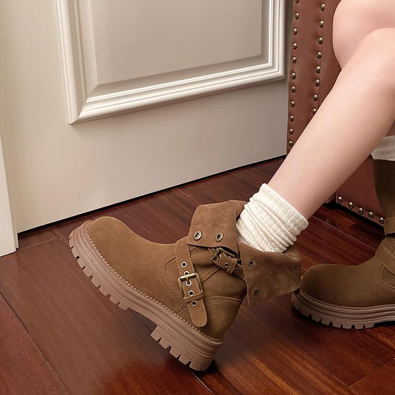 Модные ботильоны на платформе с металлическими пряжками и шипами, женские осенние новинки, с круглым носком, верх из искусственной кожи, нескользящая блочная подошва, короткие ботильоны