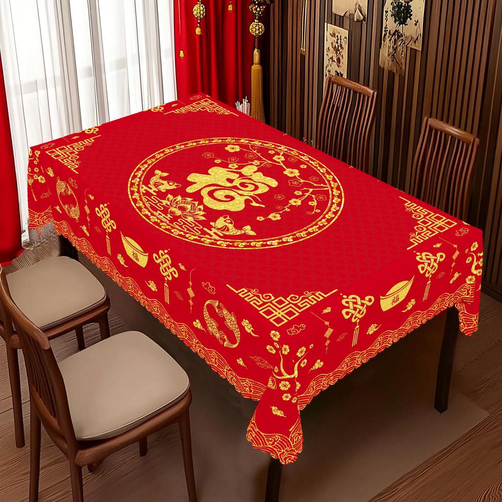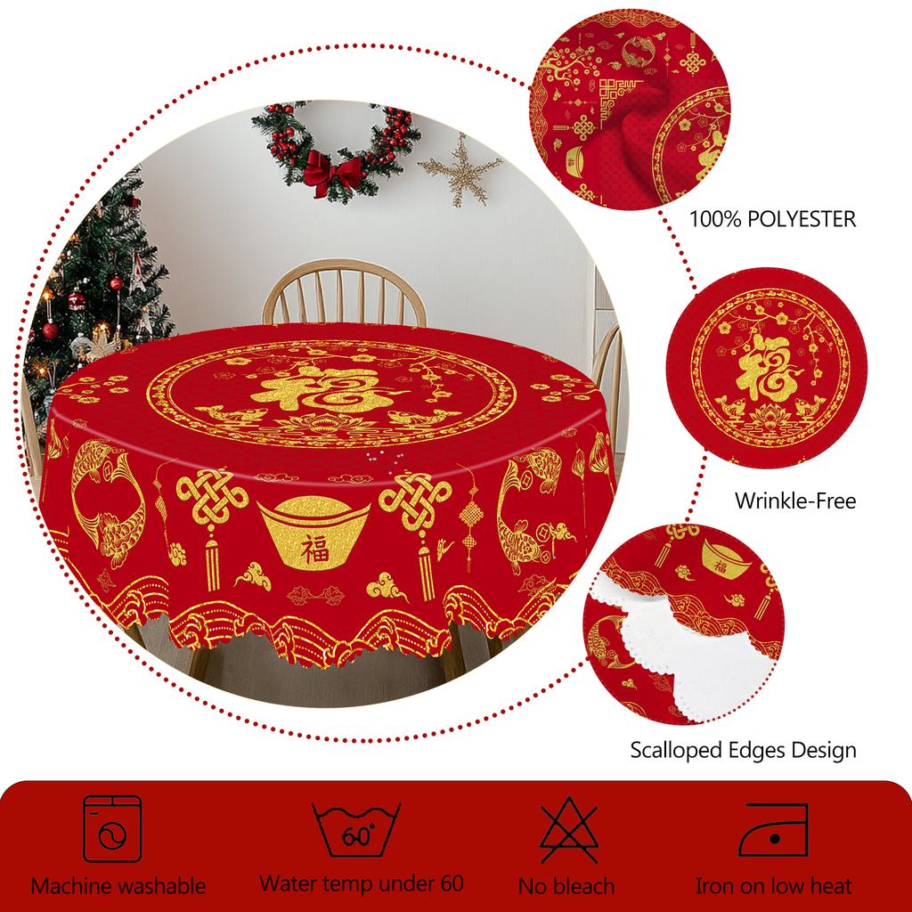 1 шт. Китайская благословляющая красная круглая скатерть, 5 размеров, Китайский фестиваль весны Богатство Кантонская печать Квадратная скатерть, Процесс тиснения края,