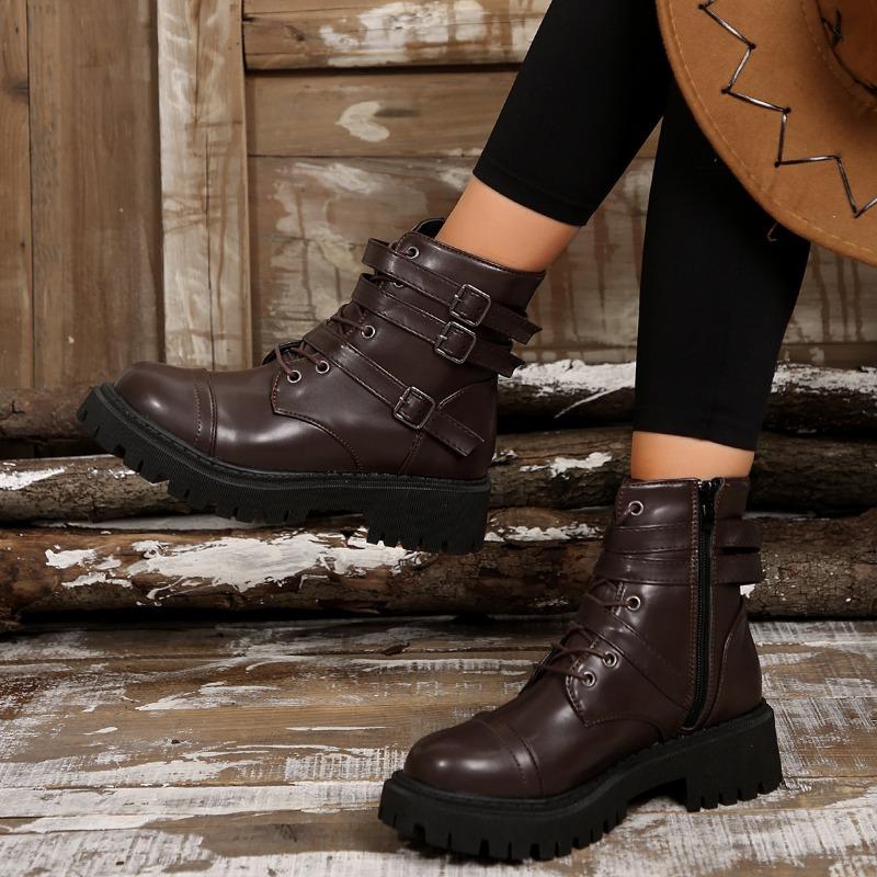 Модные европейско-американские короткие ботинки 2024 осень-зима новый товар толстая подошва боковая молния металлическое чувство дизайна однотонные женские ботинки