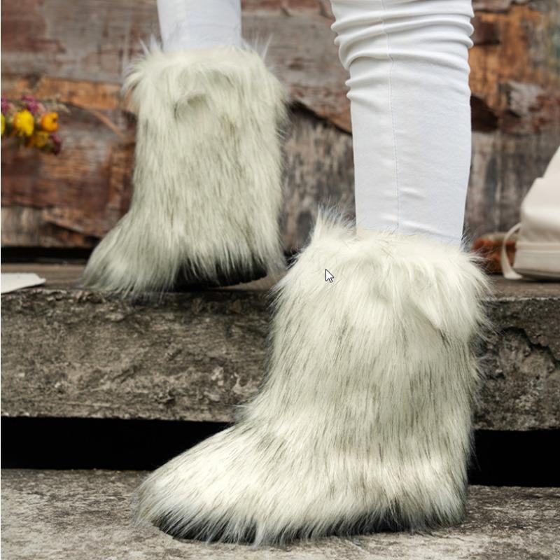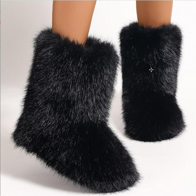Модные женские нескользящие ботильоны Зимние пушистые плюшевые теплые сапоги Роскошная мода Удобная уличная обувь на плоской подошве Zapatos De Mujer
