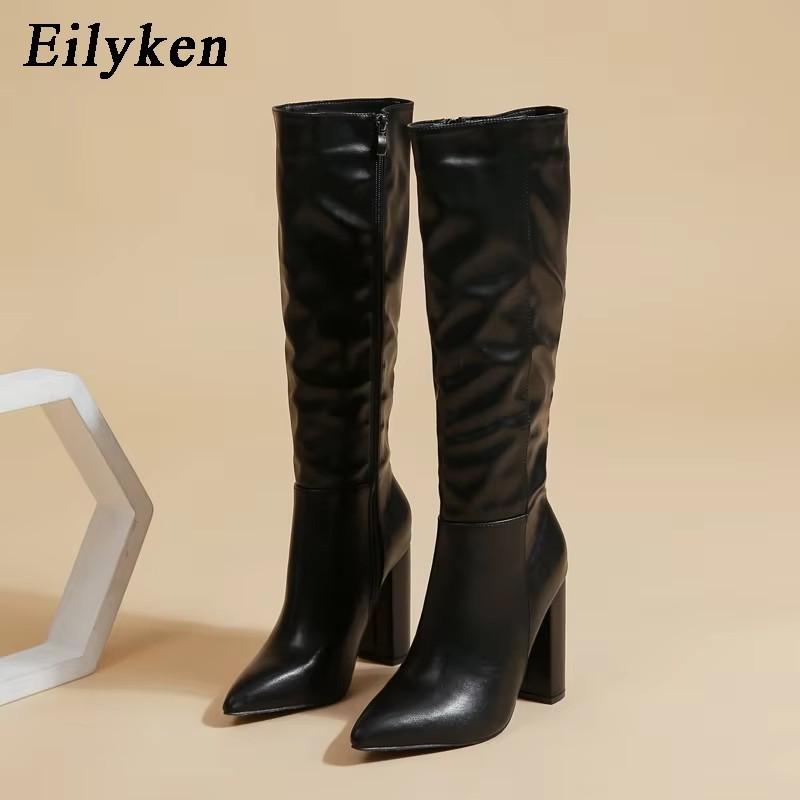 Fashion Eilyken Women Knee-High Boots Elegant Street Style Pointed Toe Chunky High Heel Zipper Long Booties Party Shoes