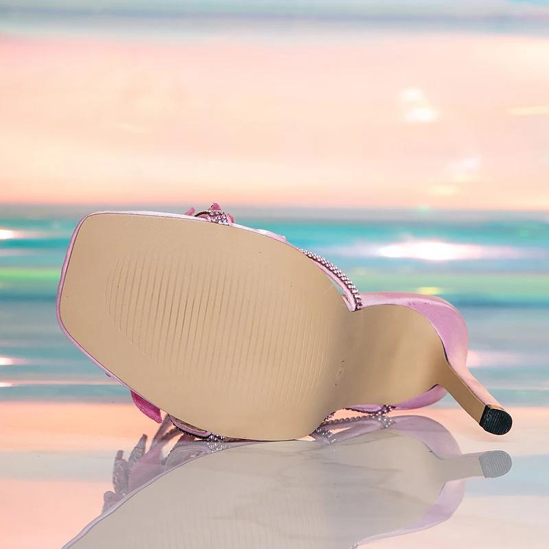 Fashion Eilyken 2025 New Design Open Toe Crystal Flower Ankle Strap Women Sandals Sexy Thin Heels Stripper Party Ladies Shoes