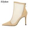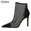 Fashion Eilyken Spring Autumn Sexy Mesh Women Ankle Boots Pointed Toe Fashion Zip Ladies Party Stiletto High Heels Shoes Size 34-40
