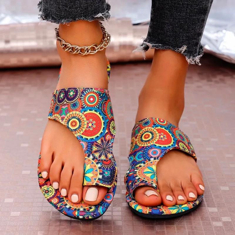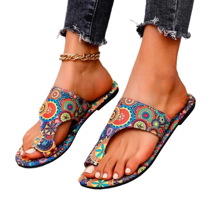 Мода 2025 Лето Шлепанцы женские с перемычкой между пальцами Модная печать Повседневные шлепанцы Женские Новые Большого размера Бестселлер Мягкая подошва Плоские шлепанцы