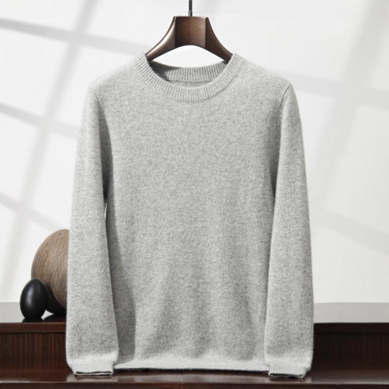 Новый двухслойный утолщенный кашемировый свитер с круглым вырезом, однотонный внутренний свитер для ношения под низ, вязаный свитер мужской