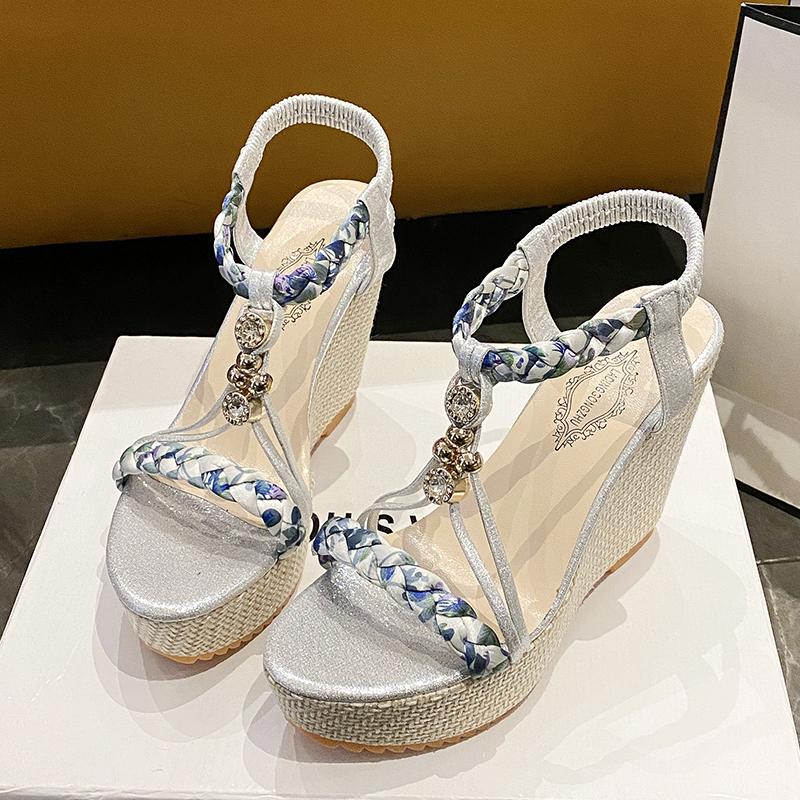 Fashion Metal Decor Wedge Sandals for Women Summer 2025 Braided Band Platform Sandals Woman Thick Bottom Beach Sandalias
