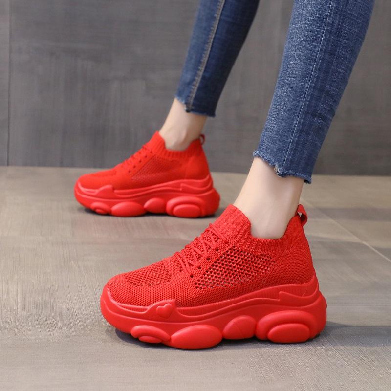 Модные 7-сантиметровые дизайнерские кроссовки для женщин, повседневная обувь на платформе, модные кроссовки на платформе, женские кеды красного цвета, повседневная обувь