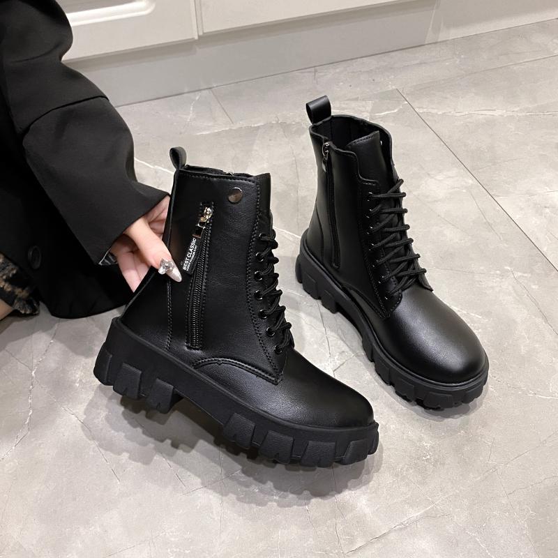 Мода 2025 Сапоги Женские Осень Зима Искусственная Кожа Ботильоны Мотоциклетные Ботинес Женские Массивный Каблук Платформа Сапоги Ботас Мухер