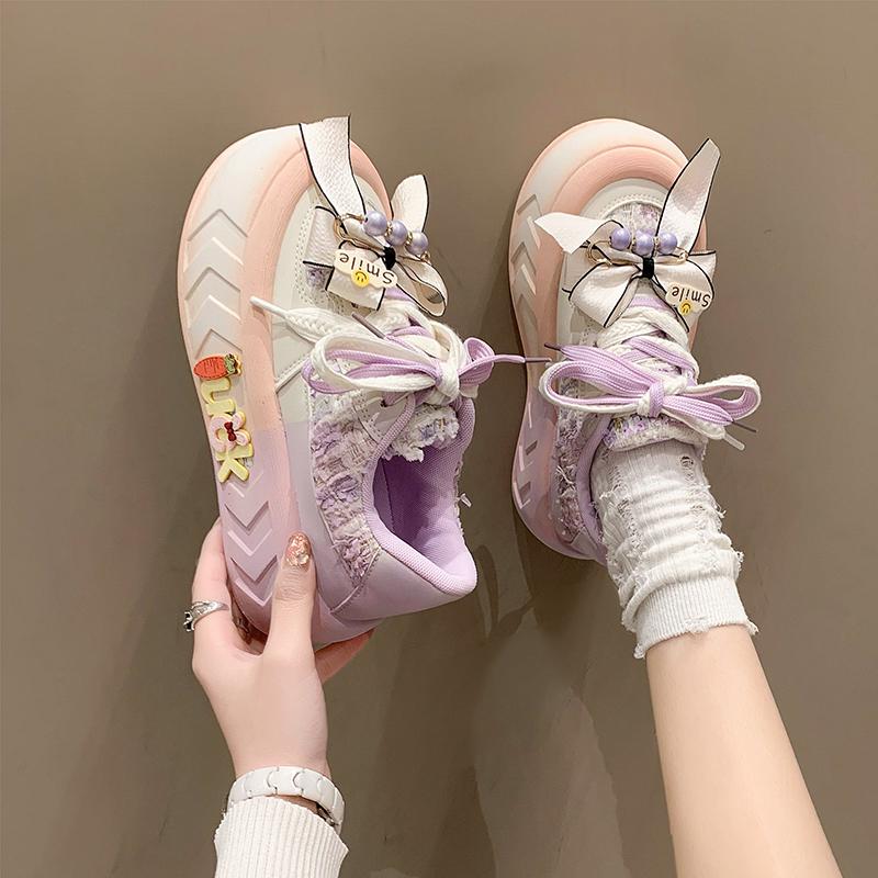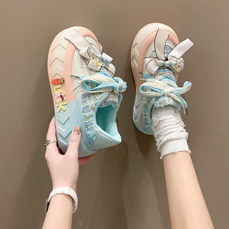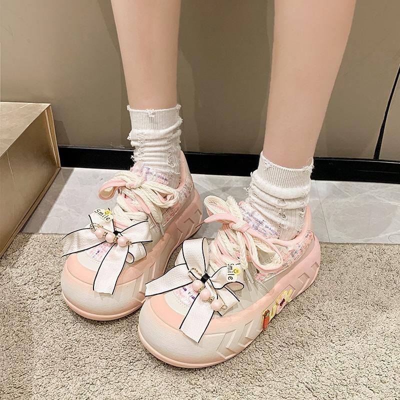 Модные 5 см новые дизайнерские милые женские кроссовки с бабочкой и узлом, модные туфли на платформе с большим носком, для скейтборда, ходьбы, тенниса для девочек