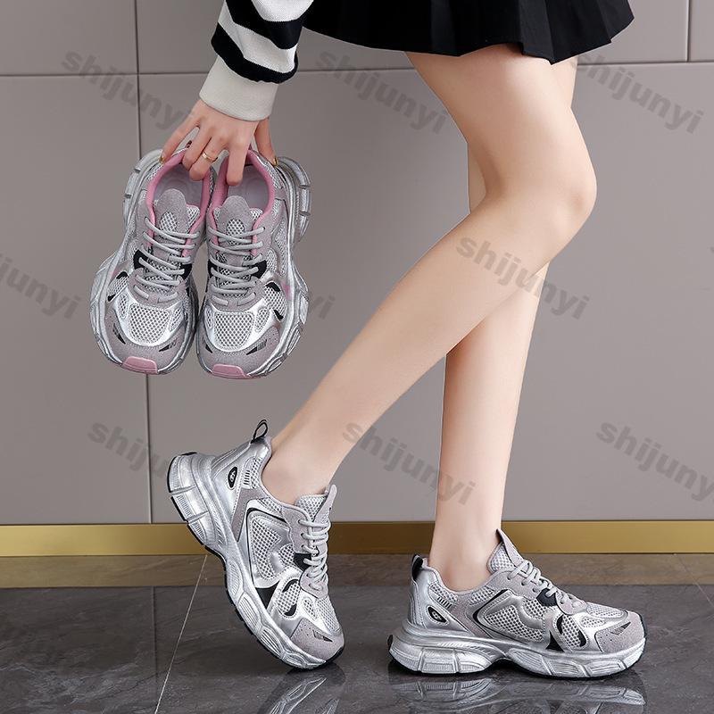 Модные массивные кроссовки на платформе для женщин Весенние дышащие сетчатые Толстая подошва Вулканизированная обувь Женские повседневные кроссовки на шнуровке для спорта и бега