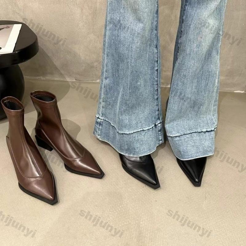 Модные женские ботильоны Модные сексуальные туфли с острым носком Женские осенне-зимние трендовые ботинки Дизайнерские элегантные ботинки на толстом каблуке для ходьбы Botas Mujer — купить товар онлайн с бесплатной доставкой по всему миру!