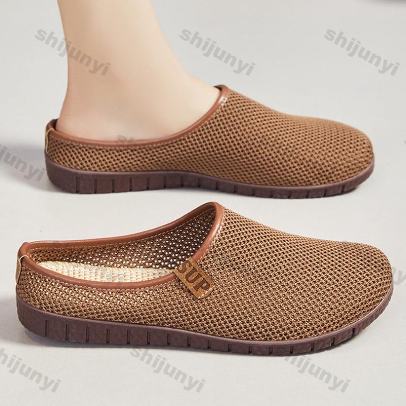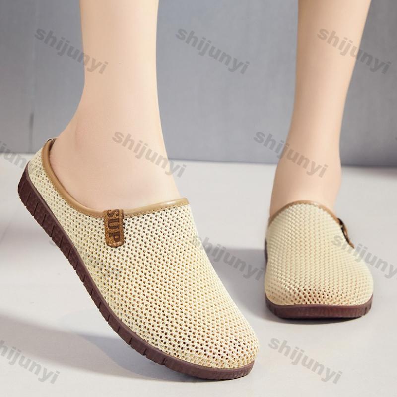 Модные женские полушлепанцы для улицы, летние дышащие удобные плоские повседневные туфли, вязаные, с полым верхом, легкие, модные сандалии-шлепанцы
