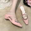 Модные хрустальные женские шлепанцы с ремешком через пятку, туфли-мюли для платья, дизайнерские женские босоножки на каблуке, летние модные шлепанцы 2025, женская обувь
