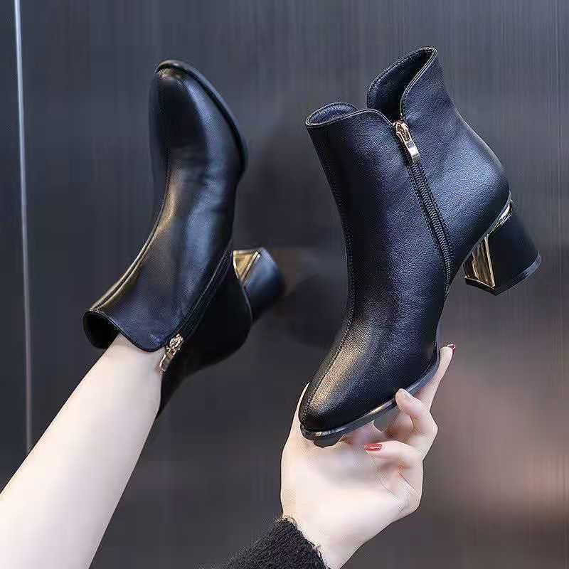 Модные однотонные кожаные осенне-зимние женские короткие туфли элегантные на среднем каблуке ботильоны Y2k удобные из ПУ 39 женские ботильоны