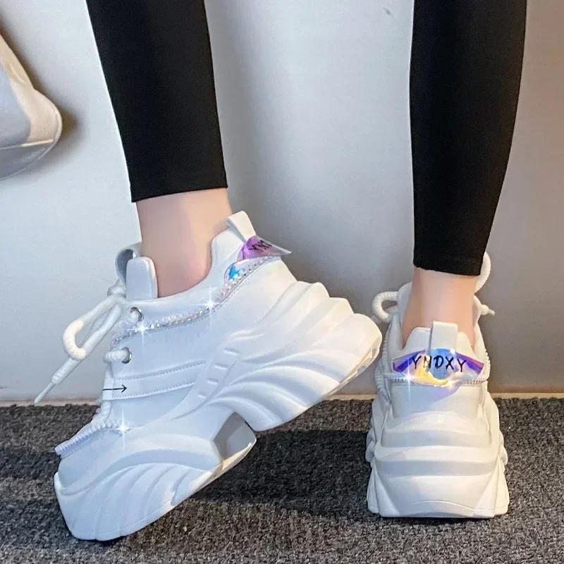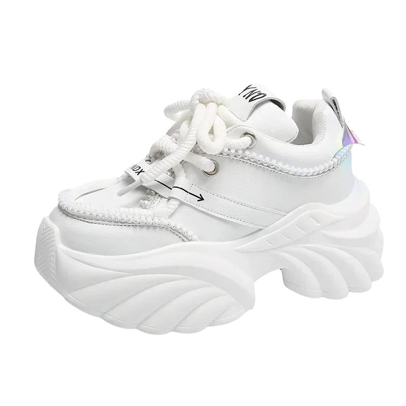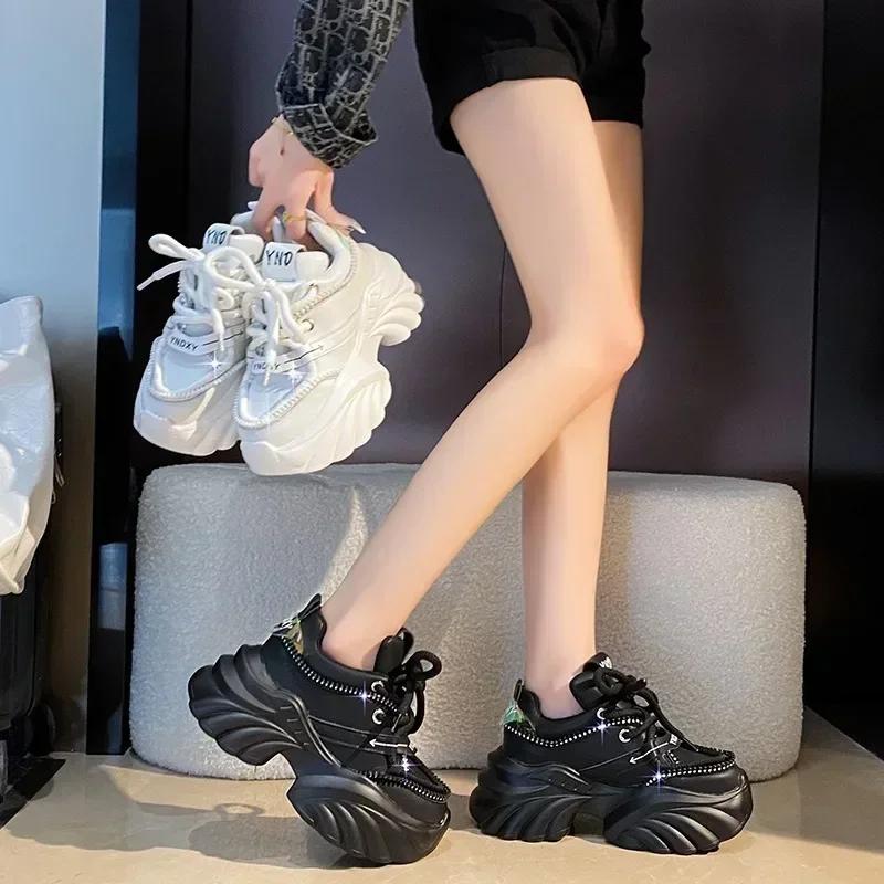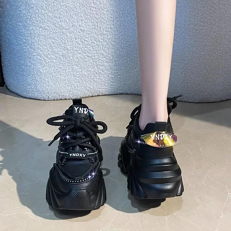 Модные женские кроссовки 7,5 см, черные теннисные туфли на платформе для женщин, новые спортивные туфли для папы с толстой подошвой и дышащей кожей