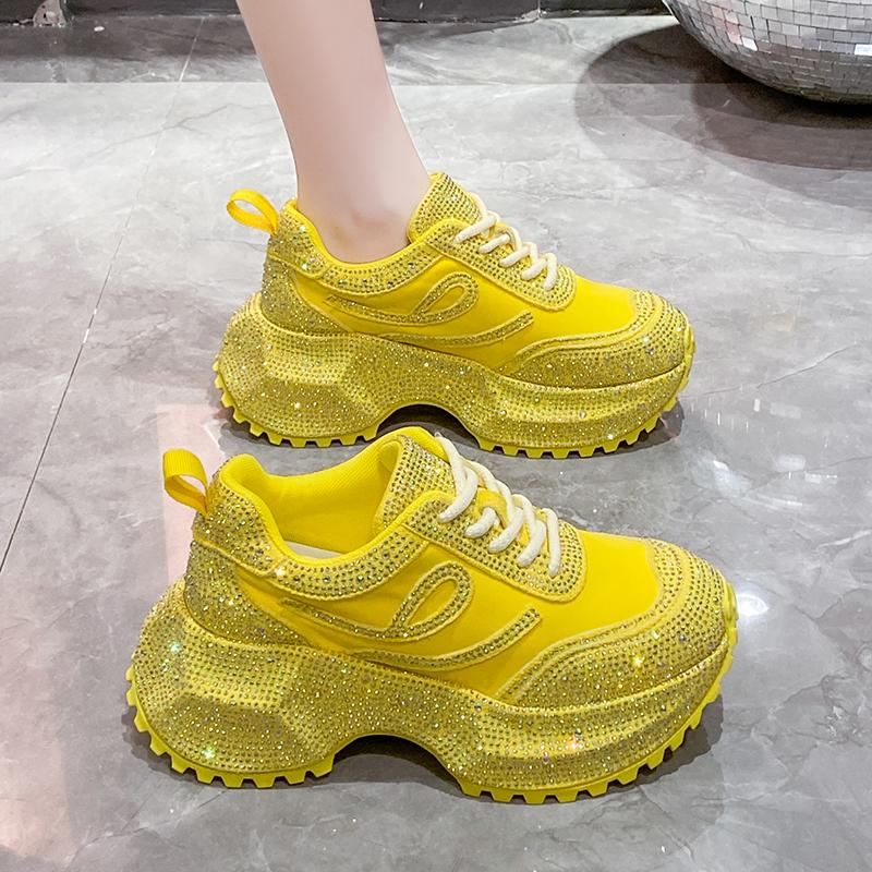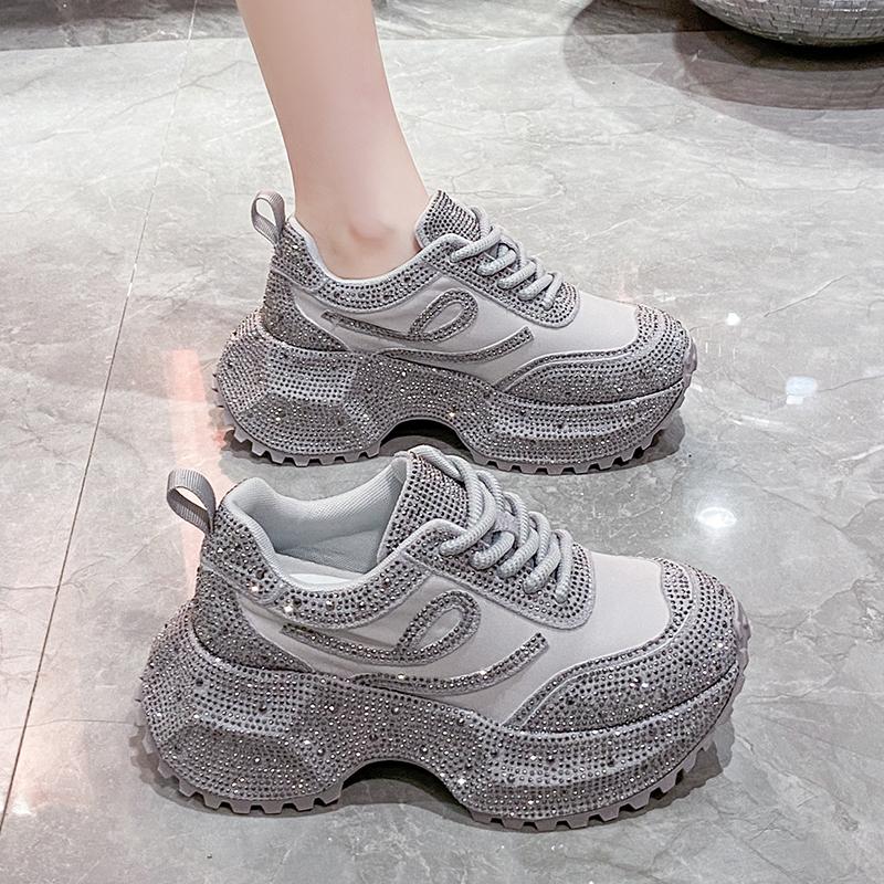 Модная женская обувь со стразами, роскошные кроссовки на платформе со стразами, уличная нескользящая обувь для бега, повседневная обувь на толстой подошве 7 см