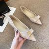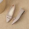 Модная женская кожаная обувь Осень Острый носок Металлическая отделка Бант Повседневная обувь Легкая Удобная Мягкая подошва Туфли Мэри Джейн