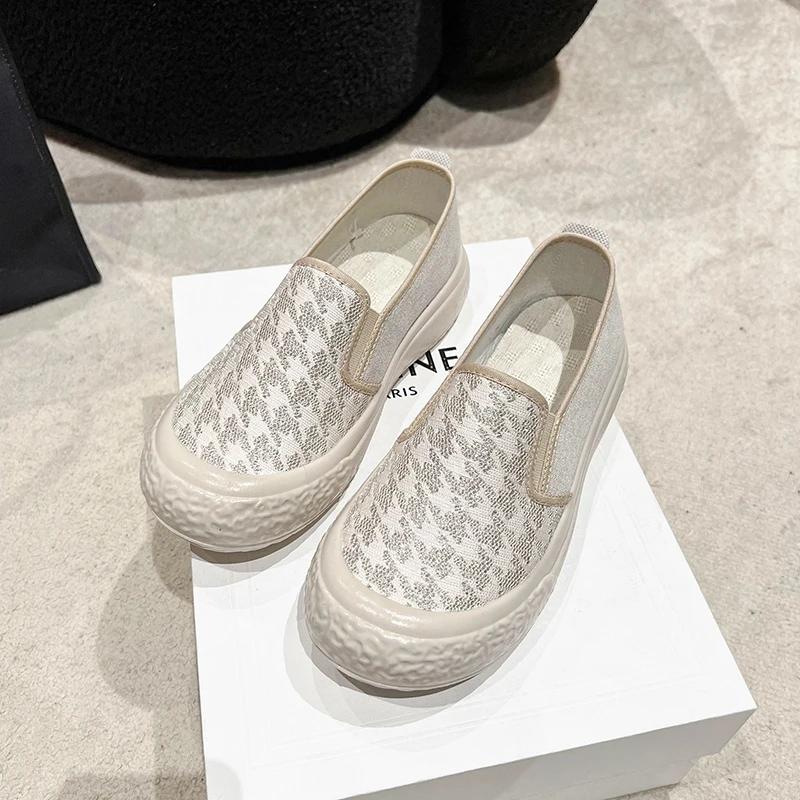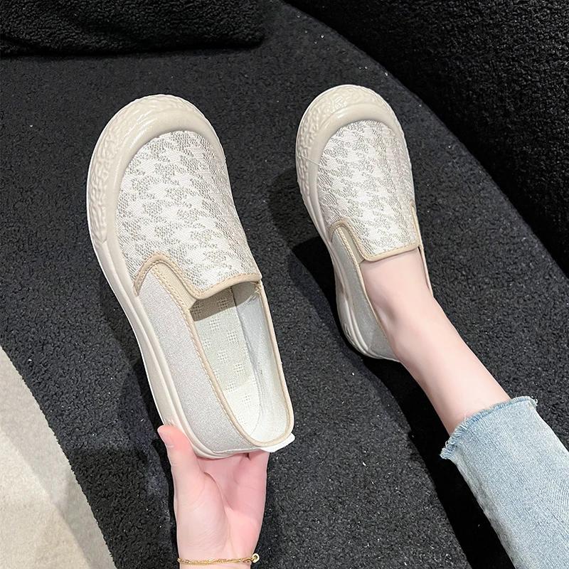 Модная женская обувь, дышащая обувь для рыбалки, повседневная обувь с плоским дном и мелким носком, на толстой подошве, из парусины для женщин