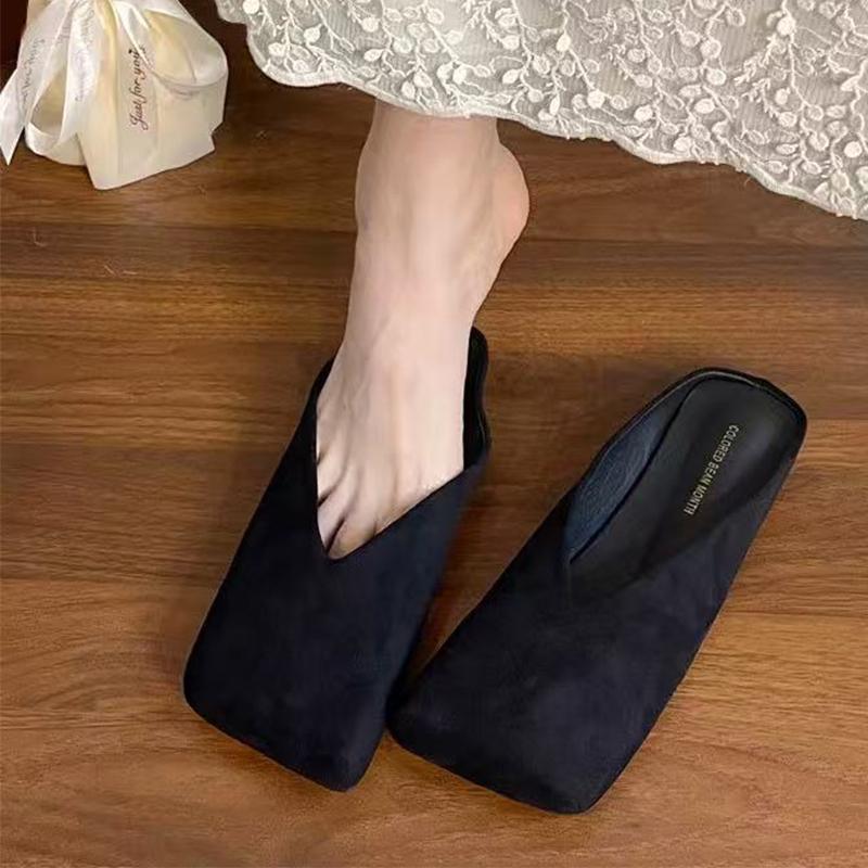 Модные женские тапочки балетки с квадратным носком мюли с ремешком на пятке замшевые модные дизайнерские туфли для платья 2025 осень новинка уютная обувь для женщин