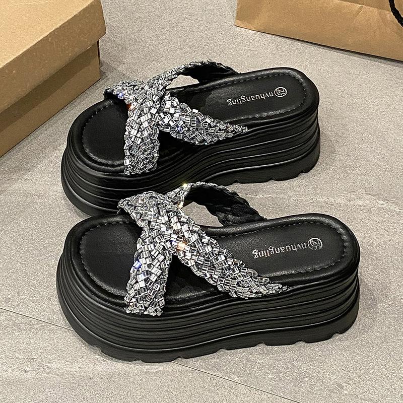 Мода Новые 8 см Летние Женские Шлепанцы Вьетнамки Женские Пляжные Блестящие Туфли Обувь на Танкетке Обувь Женщина Высокая Платформа Шлепанцы Уличные Сандалии — купить товар онлайн с бесплатной доставкой по всему миру!
