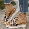 Модные женские сандалии-клинья с леопардовым принтом Лето 2025 Легкие Нескользящие Платформенные Шлепанцы Женские На Толстой Подошве С Открытым Носком Пляжные Сандалии