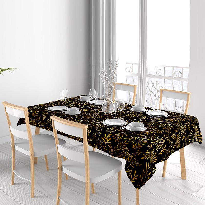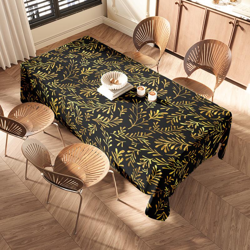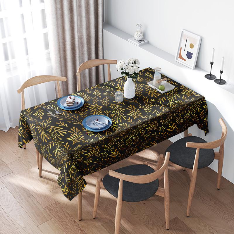 Водонепроницаемая скатерть Черно-золотая цветочная накидка на обеденный стол Моющаяся прямоугольная накладка на стол Вечеринка Свадьба Домашний декор