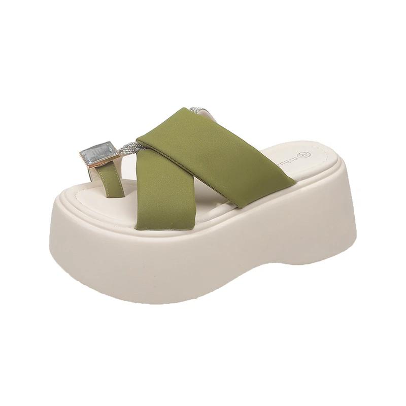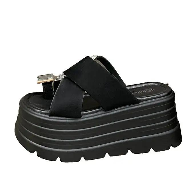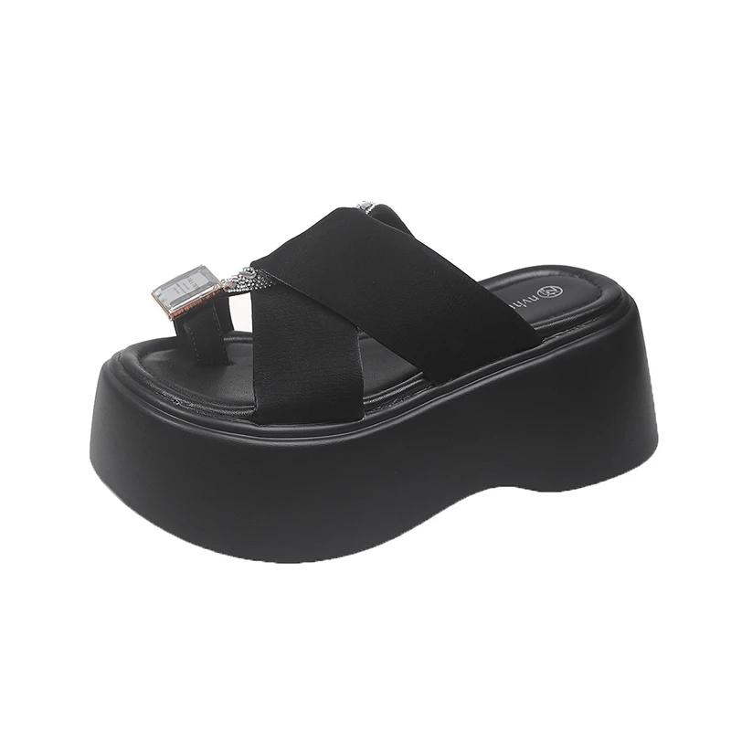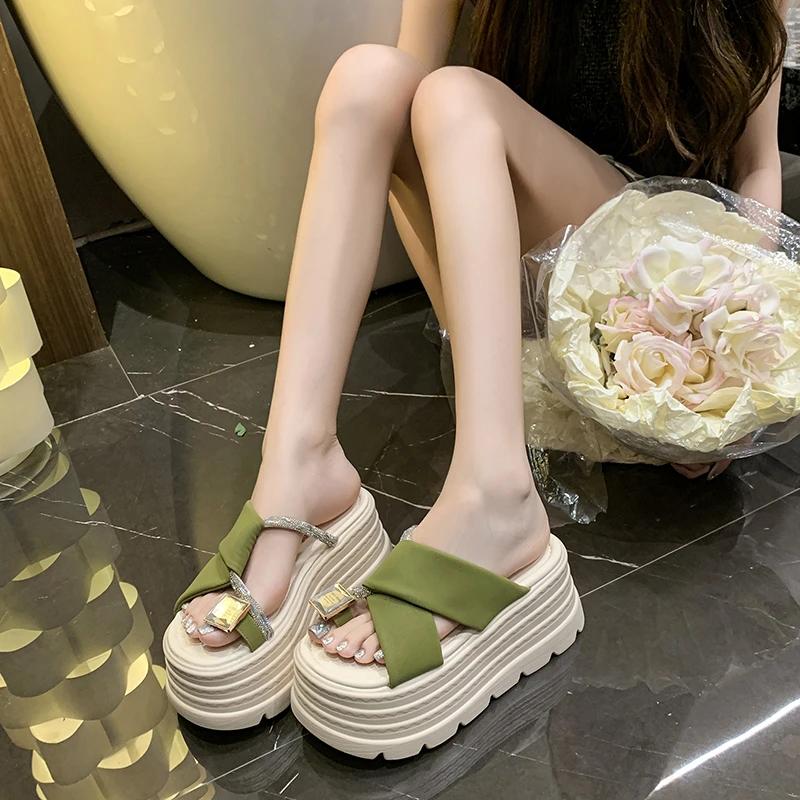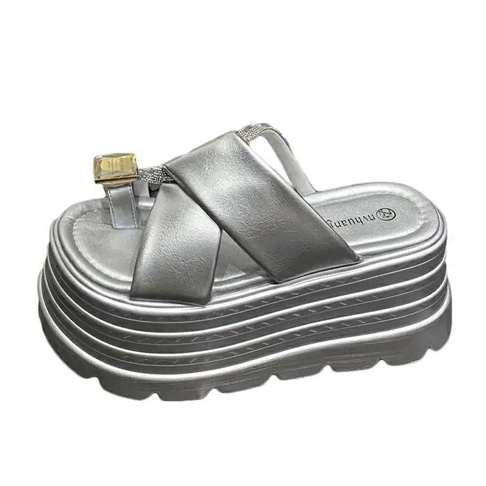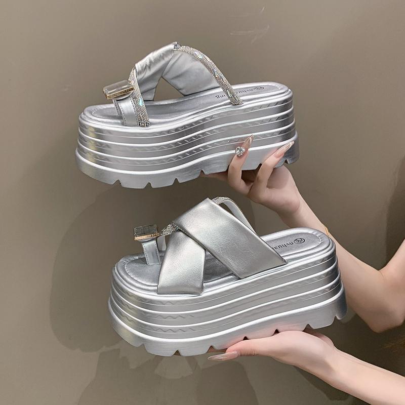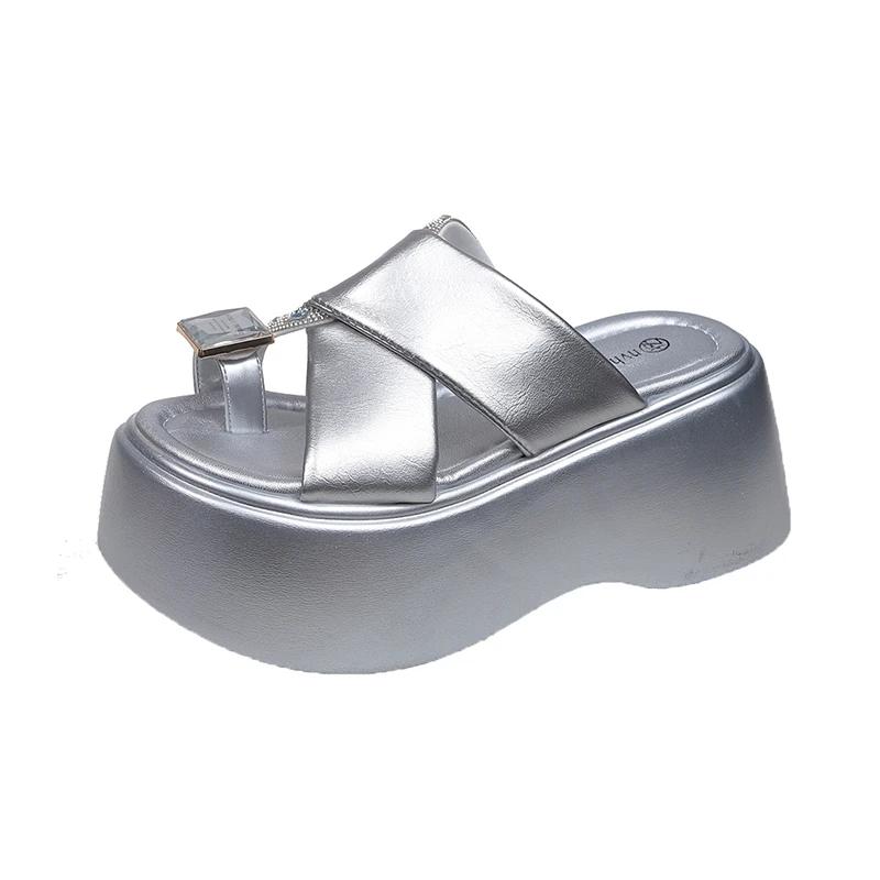 Модные 8 см римские блестящие хрустальные шлепанцы женские летние новые модные шлепанцы с пайетками на высокой платформе с открытым носком пляжные шлепанцы кожаные сандалии слайды