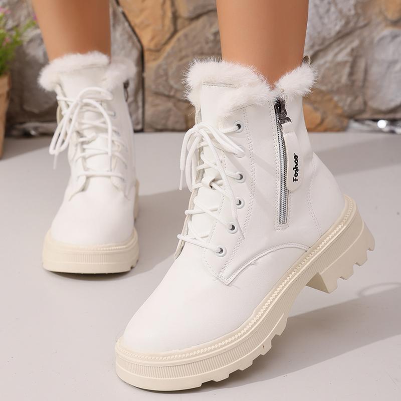 Модные женские осенне-зимние ботильоны на толстой подошве, теплые плюшевые хлопковые туфли, женская мода, черные, белые, из искусственной кожи, на платформе, ботильоны для женщин