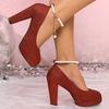 Модные Роскошные Серебристые Красные Туфли-лодочки на Очень Высоком Каблуке Женские Большого Размера Жемчужная Пряжка на Щиколотке Вечерние Летние Туфли с Квадратным Носком на Массивной Платформе