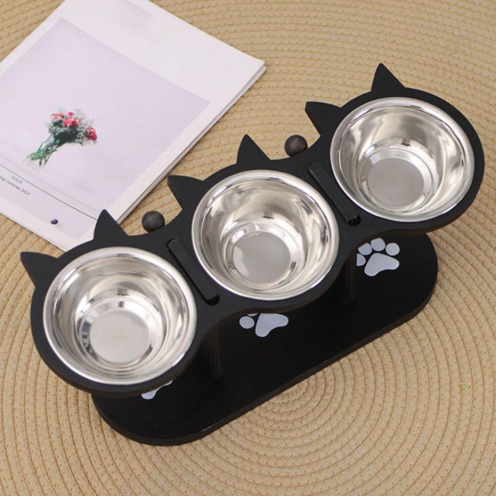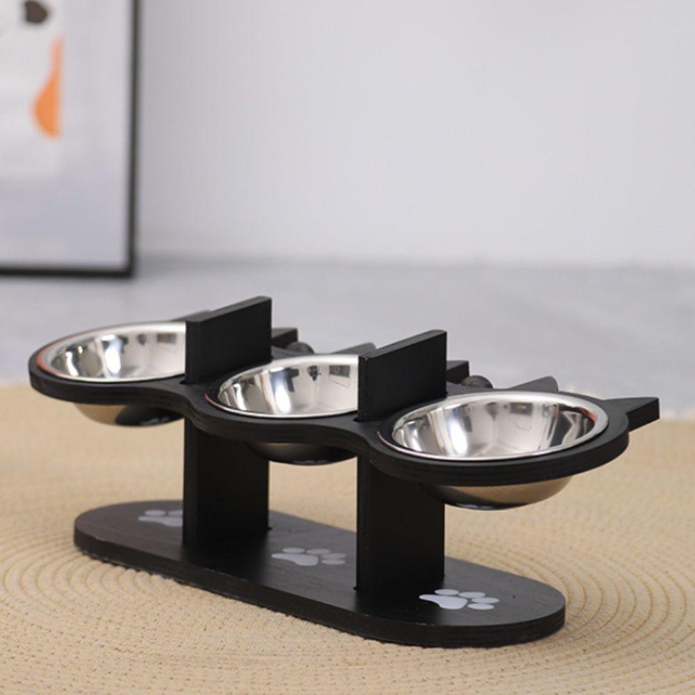 Деревянная подставка Кормушка для домашних животных Миска для воды из нержавеющей стали Приподнятая миска для кошек и собак Щенок