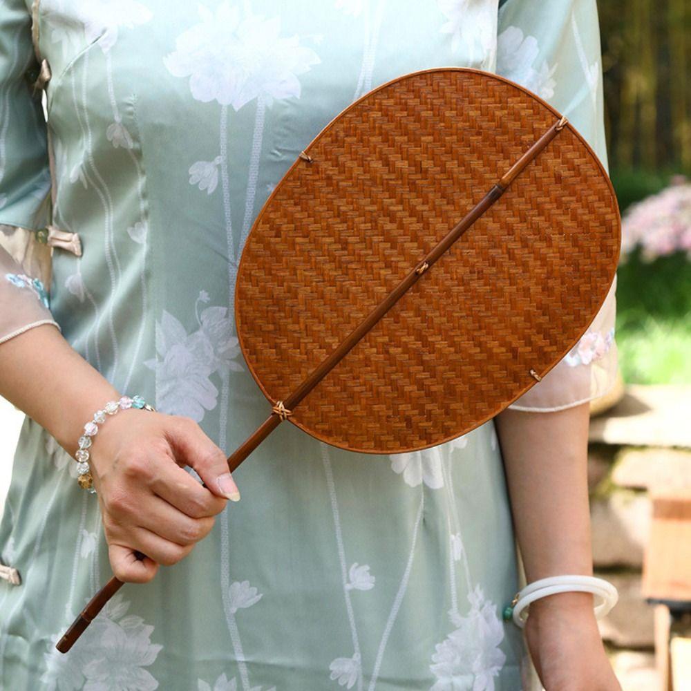 Handmade Bamboo Woven Fan Retro Hand Cranked Fan Chinese Style Circular Fan Photography Prop