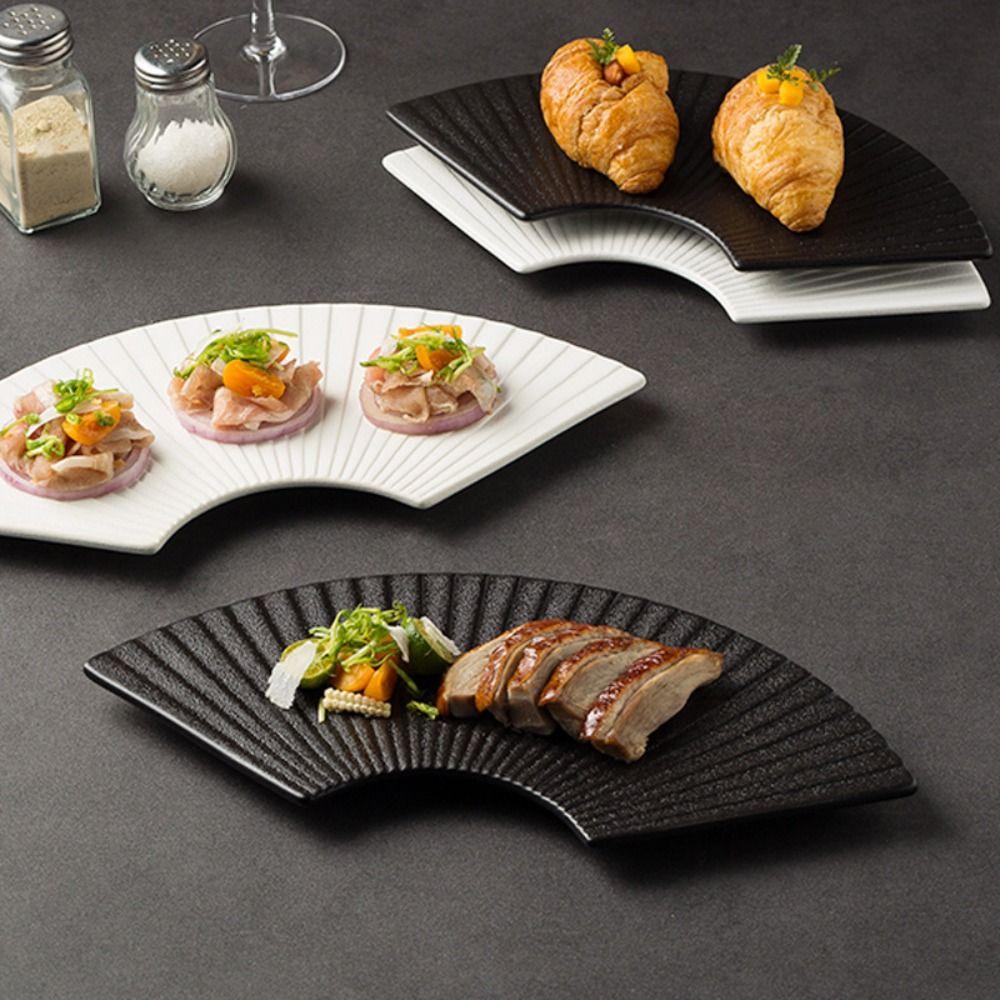Керамическая тарелка для суши Прочный поднос для десертов Посуда Веерная тарелка в полоску Фрукты