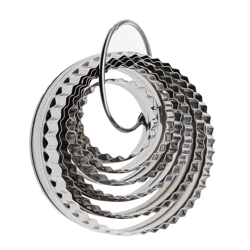 6Pcs Rust-proof Wavy Hem Biscuit Cutter Hand Press Type Dumpling Skin Cutting Mold Cake