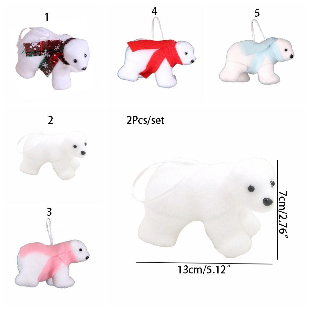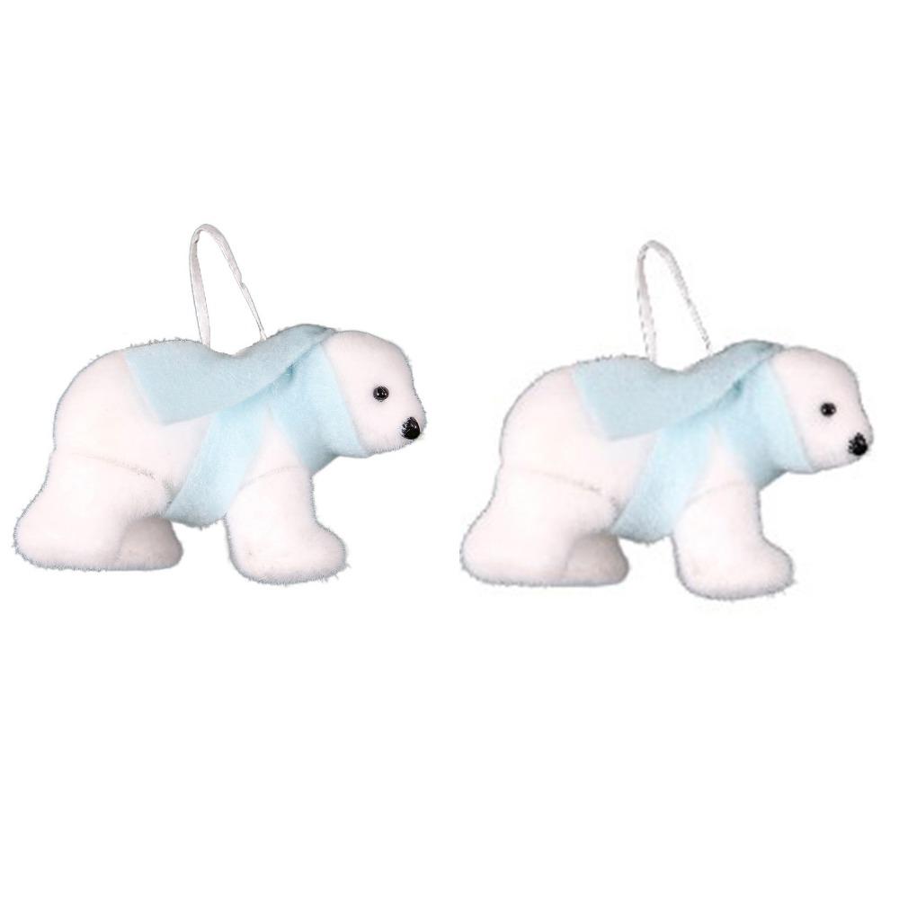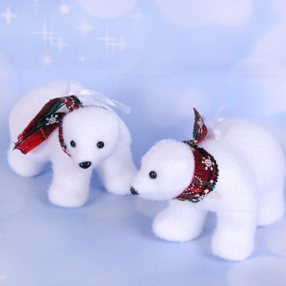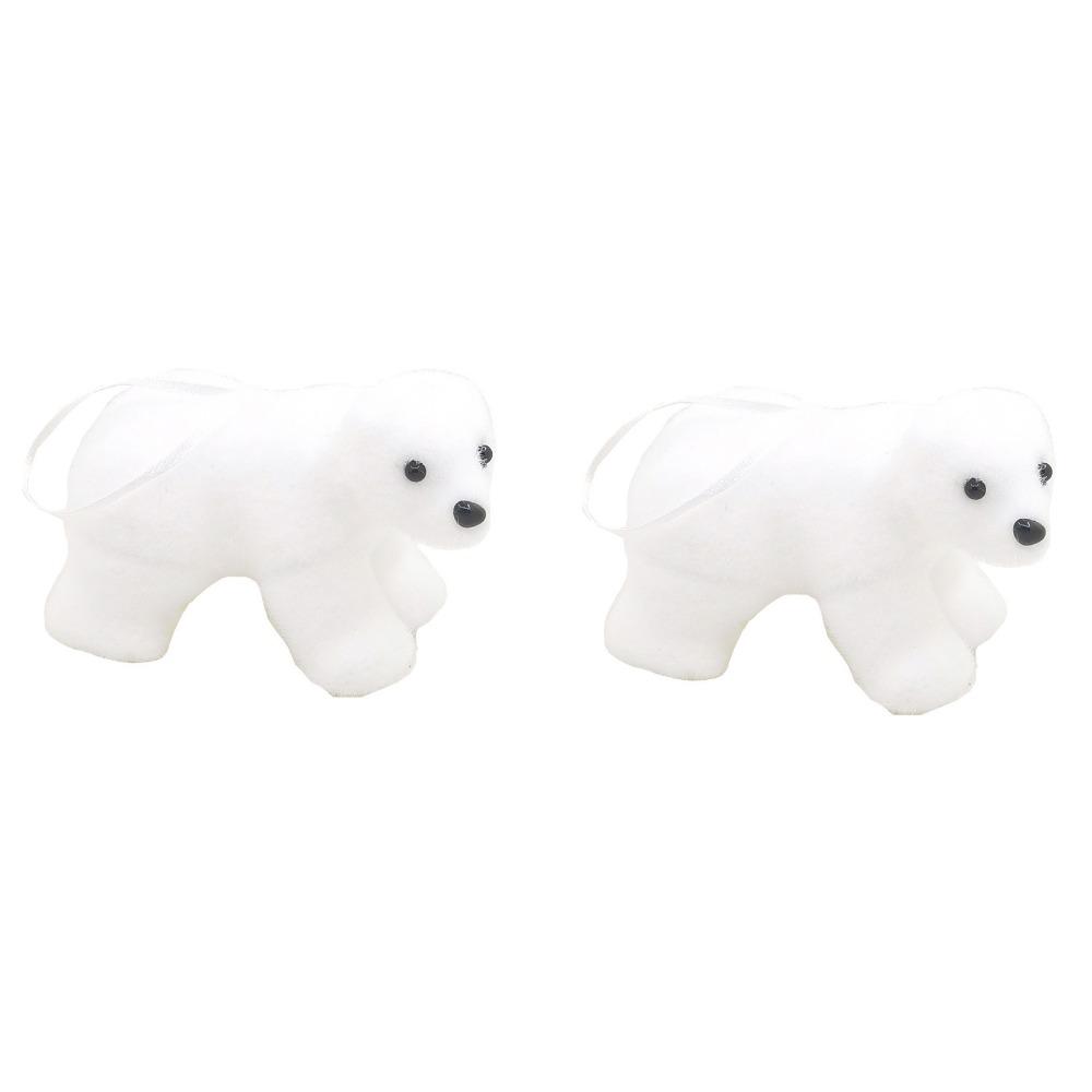 2Pcs Cute Christmas Bear Pendant Animal Simulated Polar Bear White Bear Ornaments Outdoor