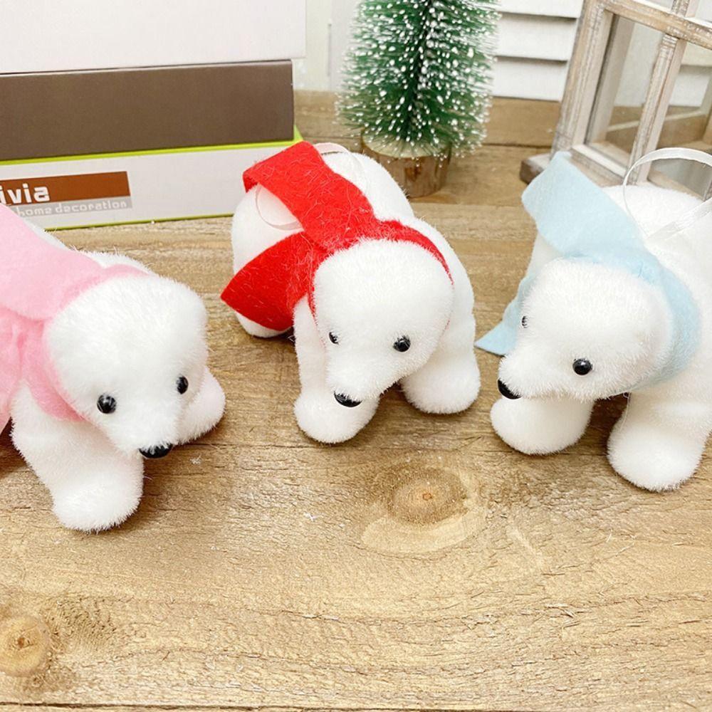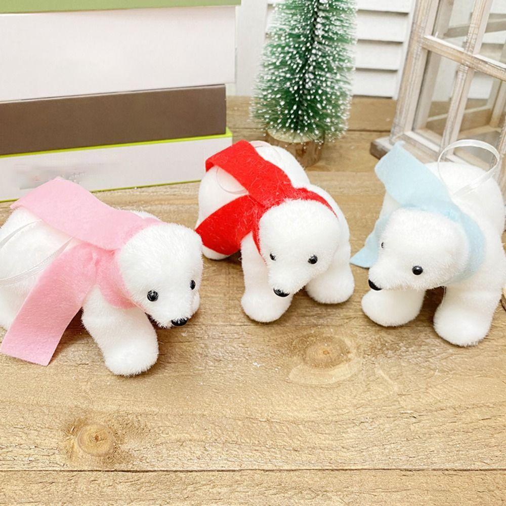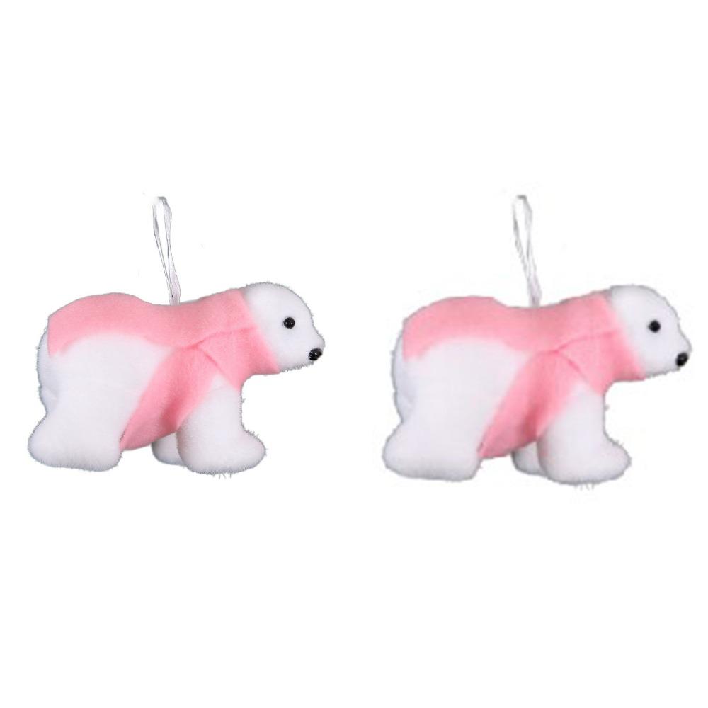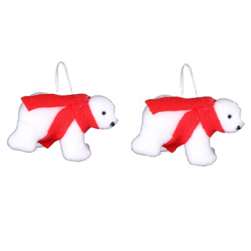 2Pcs Cute Christmas Bear Pendant Animal Simulated Polar Bear White Bear Ornaments Outdoor